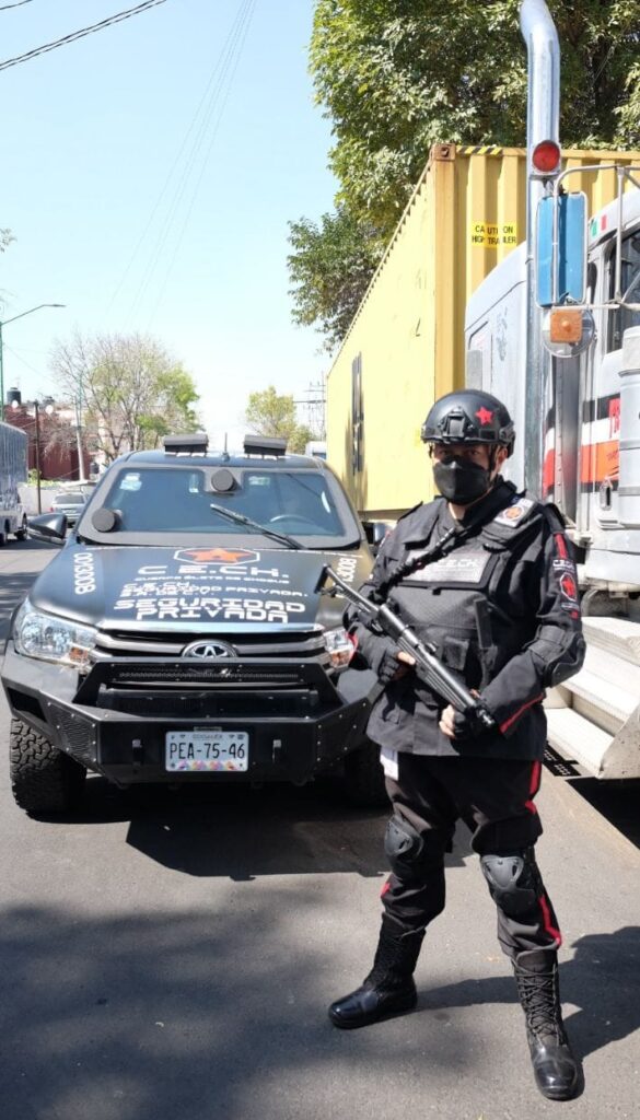 Custodios armados en el traslado de mercancías o custodia para transporte (militares y marinos), con unidades blindadas nivel IV (armas largas) o unidades sin blindar y con custodios sin armas, en este servicio los custodios se encuentran dentro de un vehículo a distancia de un transporte por parte de la empresa C.E.CH. Seguridad Privada, el cual en la mayor parte de las ocasiones se encontrará en la parte posterior del transporte, con el objetivo de minimizar el riesgo de sufrir un atentado contra la mercancía trasladada y mitigar la pérdida.